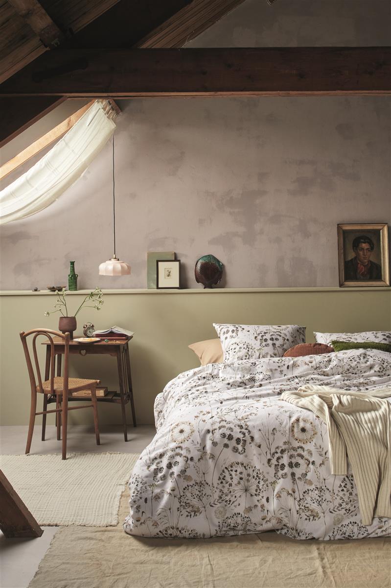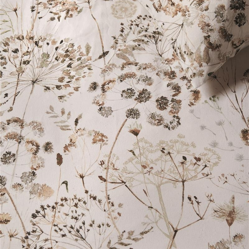 Dekbedovertrek Windy is een perfect overtrek voor dit najaar. Niet alleen de print, maar ook het heerlijk zachte en warme katoenflanel waar dit overtrek van gemaakt is, draagt hieraan bij. De print op het overtrek is een winters tuinbeeld met silhouetten van uitgebloeide schermbloemen in zachte vergrijsde tinten en chocoladebruin. Zowel de voor- als achterkant van het overtrek en de kussenslopen hebben dezelfde print.