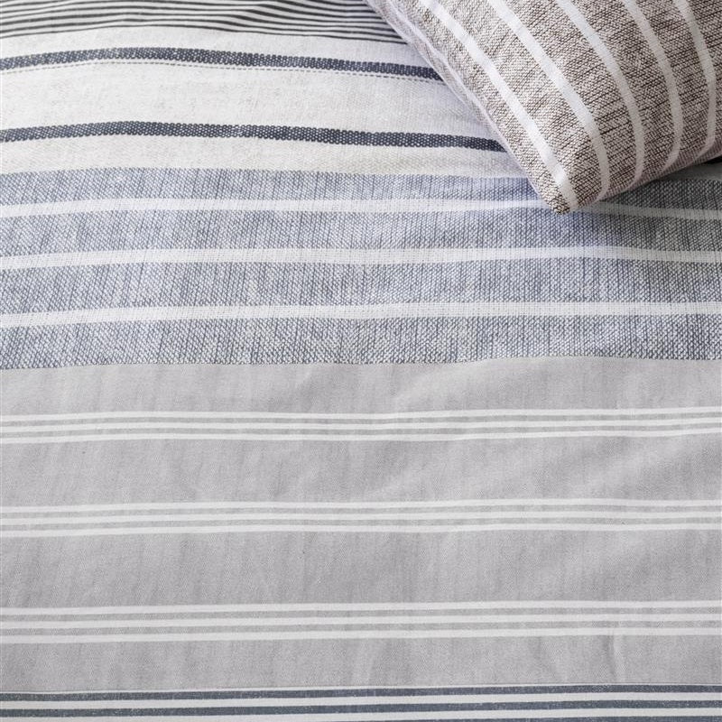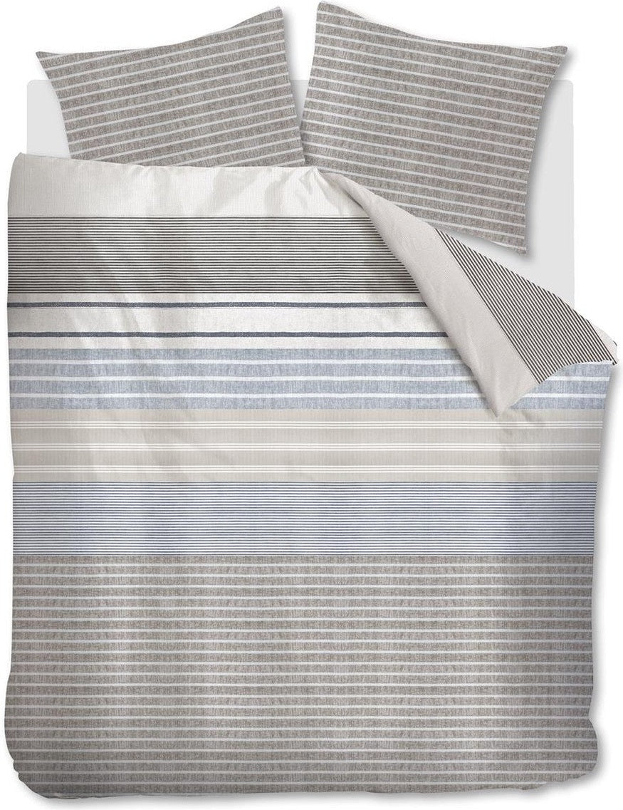 Der Frühling kommt, bringen Sie den Sommer in Ihr Zuhause und Schlafzimmer. Der Bettbezug France von Ariadne at Home hilft Ihnen dabei mit seinem verspielten Streifen- und Bänder-Print. Die sanften, rustikalen Farben wie Taupe, Sand, Grau und Blau sorgen für eine warme und gemütliche Atmosphäre, ideal zum Einkuscheln am Abend. Vorder- und Rückseite des Bettbezugs „France“ sind identisch.