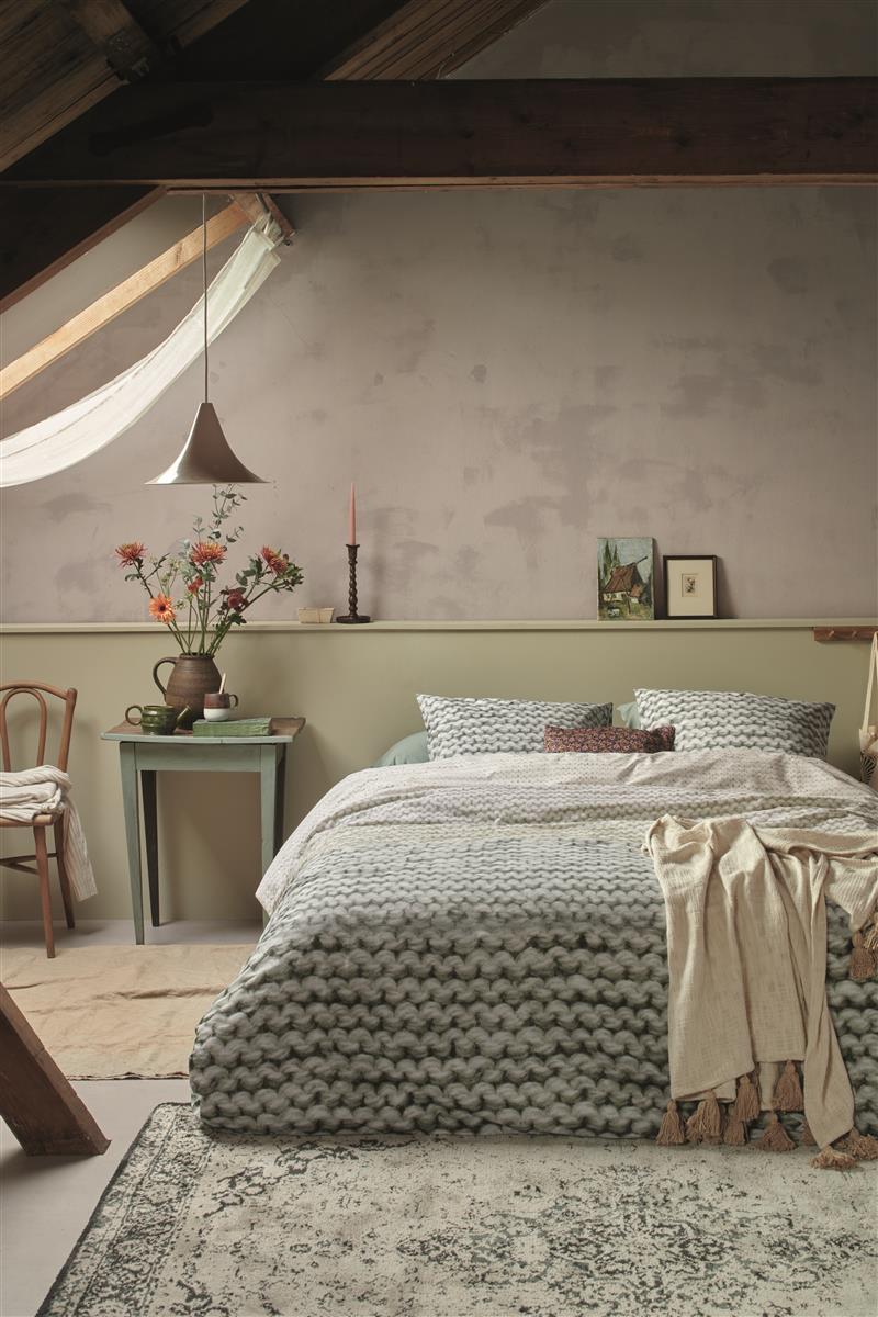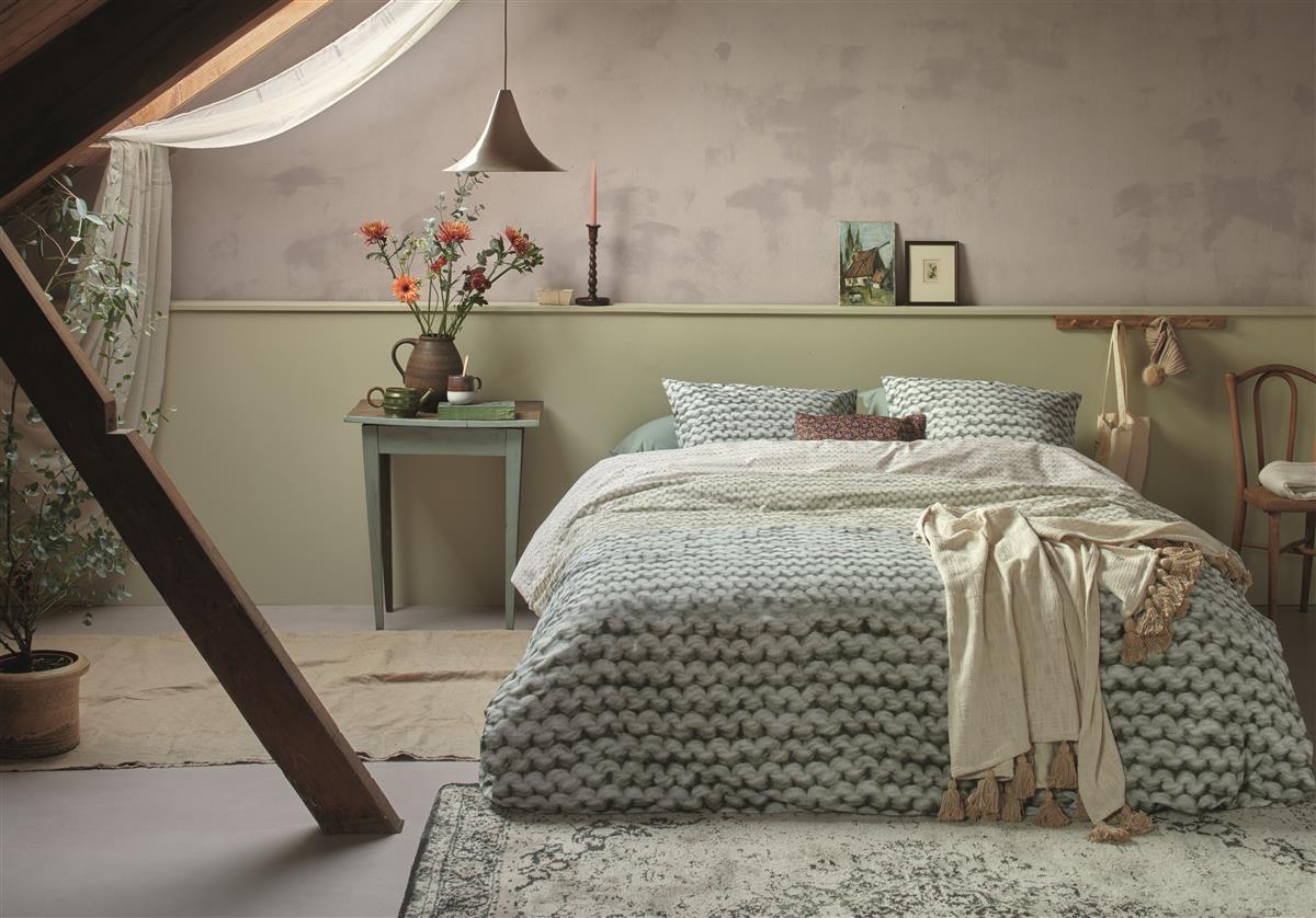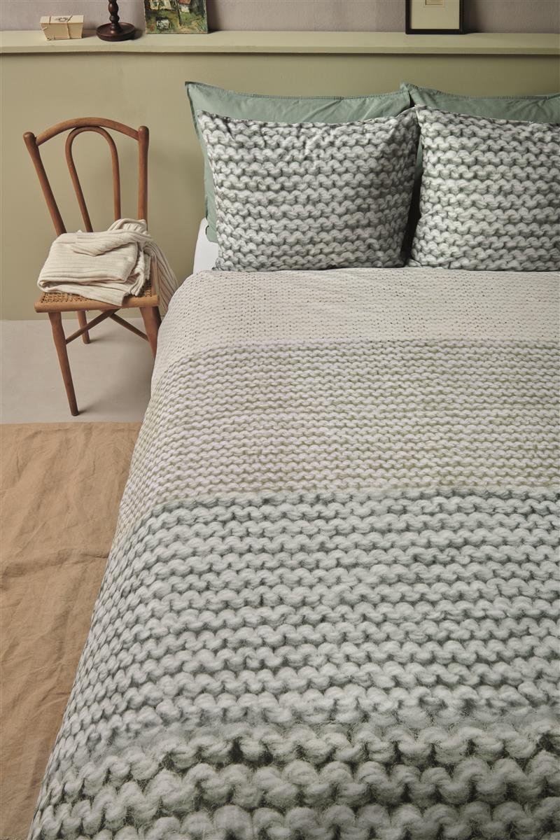 Warm und gemütlich, so können wir den Mixed-Bettbezug von Ariadne at Home beschreiben. Der Druck besteht aus mehreren horizontalen Streifen mit verschiedenen Strickmustern in unterschiedlichen Größen und Grüntönen. So können Sie Ihrem Schlafzimmer ganz einfach einen warmen Winterlook verleihen. Die natürlichen, hellen Farben verleihen dem Bezug gleichzeitig eine frische Optik. Sowohl die Vorder- als auch die Rückseite des Covers sind gleich.