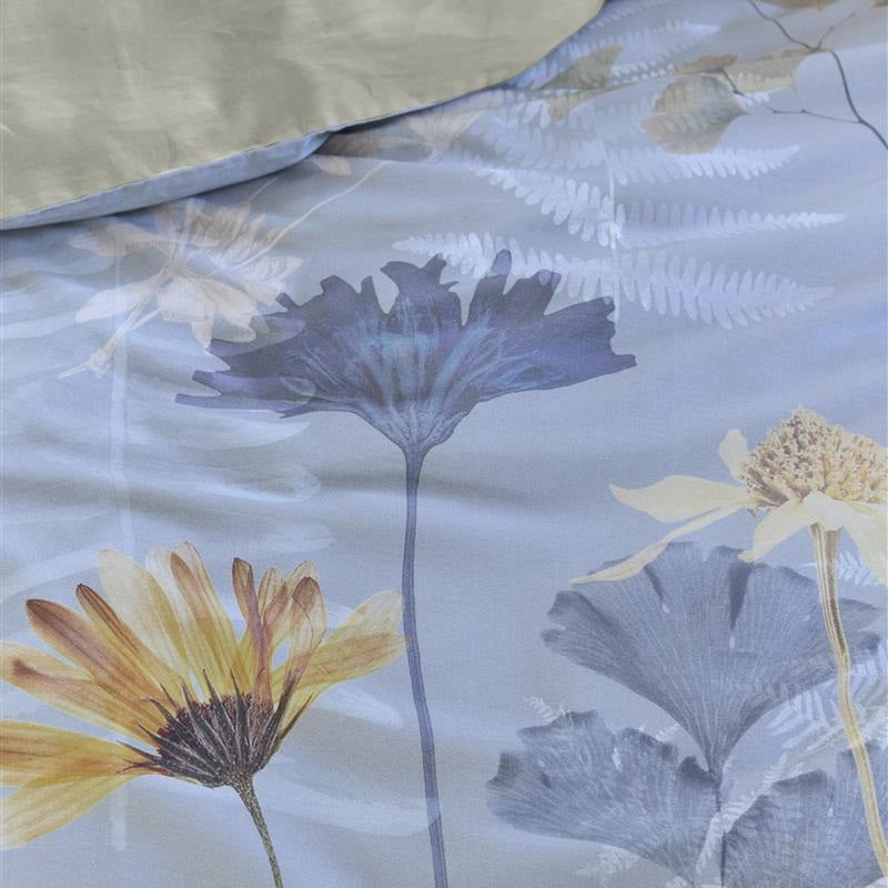 Verwandeln Sie Ihr Schlafzimmer mit dem Bettbezug Nala von Beddinghouse in ein romantisches Paradies. Das Design zeigt eine bezaubernde Mischung aus Blumen, Zweigen und Blättern in sanften Hellblau-, Dunkelblau- und Sandtönen, wunderschön vor einem mittelblauen Hintergrund. Durch die verspielte Anordnung der Blumen entsteht eine stimmungsvolle und lebendige Atmosphäre. Der Bettbezug besteht aus 100 % Baumwollsatin und bietet einen luxuriösen Glanz und eine seidig weiche Haptik. Die schlichte sandfarbene Rückseite ermöglicht einen einfachen Stilwechsel und verleiht Ihrer Bettwäsche ein ruhiges Finish.