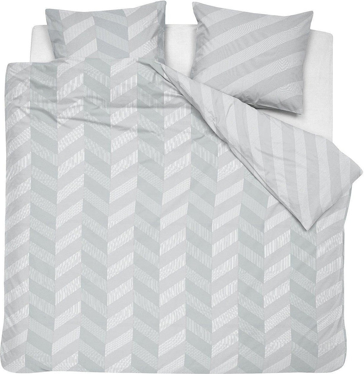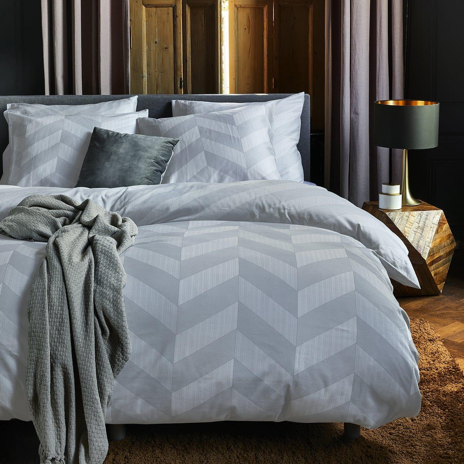 Der Bettbezug aus 100 % Bio-Baumwollsatin Atomy von Damai hat ein Fischgrätenmuster, das in breiten Bändern gezeigt wird, wobei sich Hell und Dunkel für einen einzigartigen Effekt abwechseln. Die Rückseite des Bettbezugs hat ein Muster aus diagonalen Streifen. Ausgeführt in einer satten Farbe für einen extra luxuriösen Look.