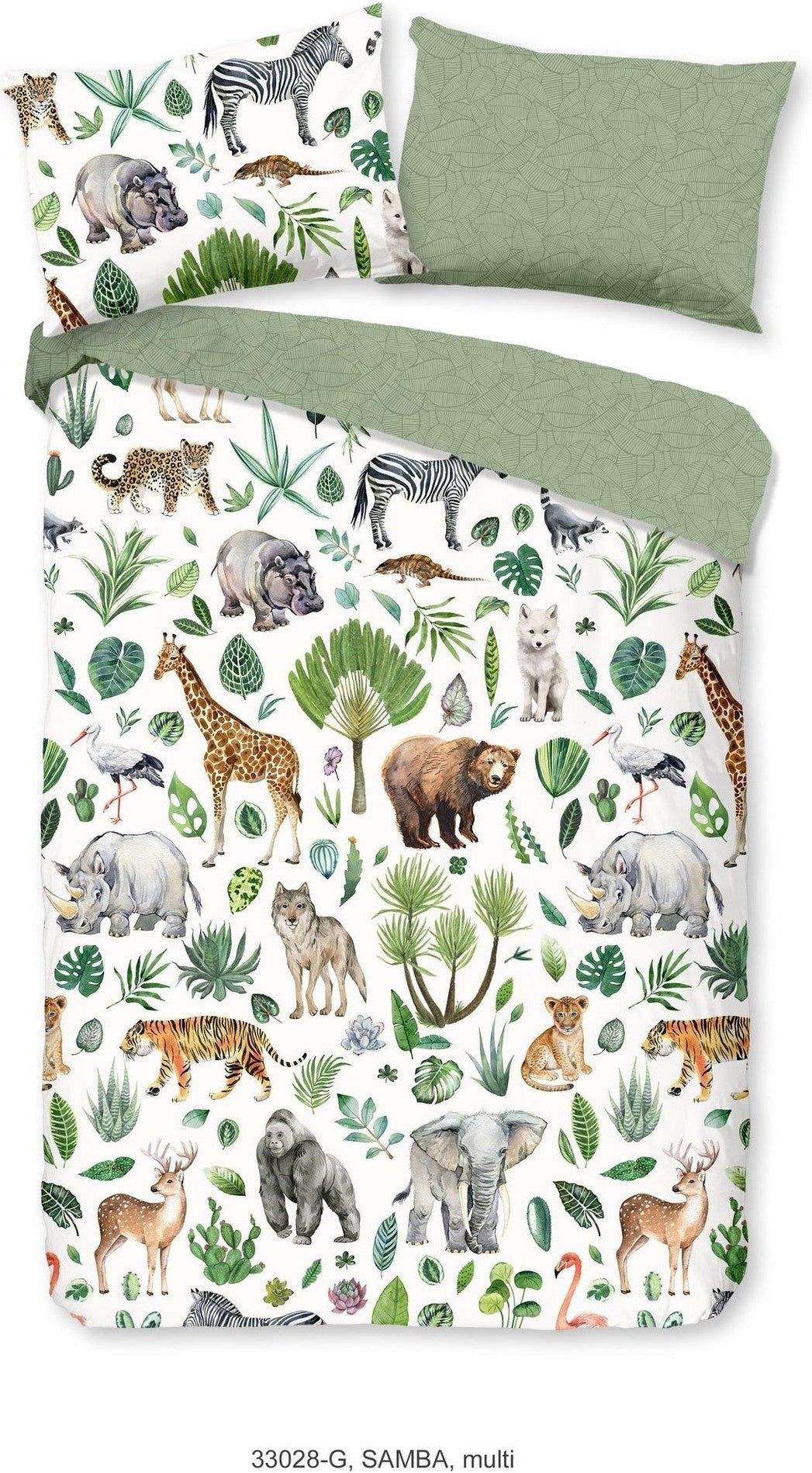 Kinderbettbezug „Samba“ von Good Morning mit afrikanischen Tieren / Big Five, in der Farbe „Multi“ besteht aus 100 % Baumwolle. Diese Qualität ist atmungsaktiv, feuchtigkeitsabsorbierend und fühlt sich weich und geschmeidig an. Dieser schöne Kinderbettbezug ist eine Bereicherung für jedes Kinderzimmer und für jede Jahreszeit geeignet. Der Baumwoll-Bettbezug ist im Sommer wunderbar kühl und sorgt im Winter für Wärme.