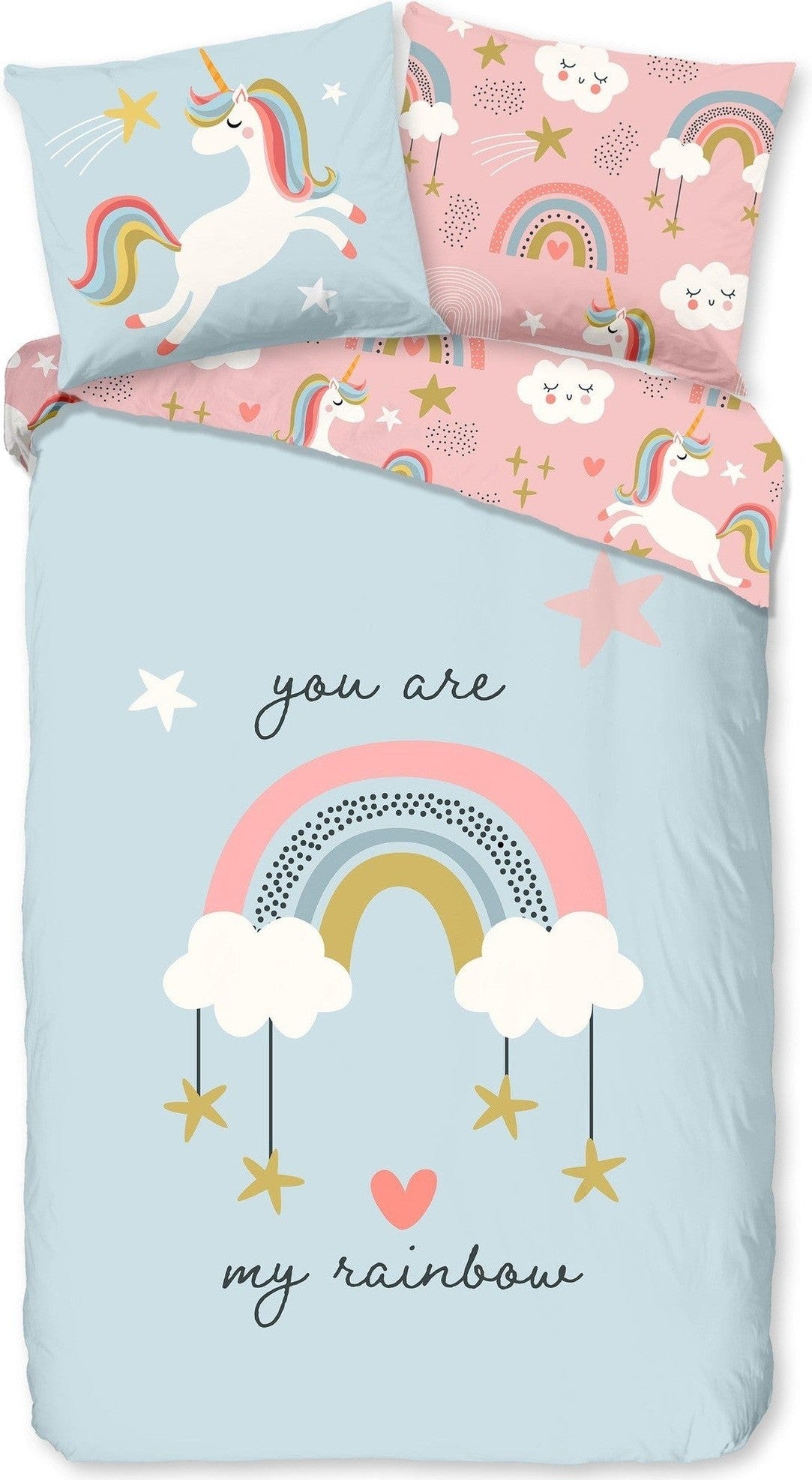 Kinderbettbezug „Suus“ von Good Morning mit Einhörnern und Regenbögen, in der Farbe „Multi“ besteht aus 100 % Baumwolle. Diese Qualität ist atmungsaktiv, feuchtigkeitsabsorbierend und fühlt sich weich und geschmeidig an. Dieser schöne Kinderbettbezug ist eine Bereicherung für jedes Kinderzimmer und für jede Jahreszeit geeignet. Der Baumwoll-Bettbezug ist im Sommer wunderbar kühl und sorgt im Winter für Wärme.