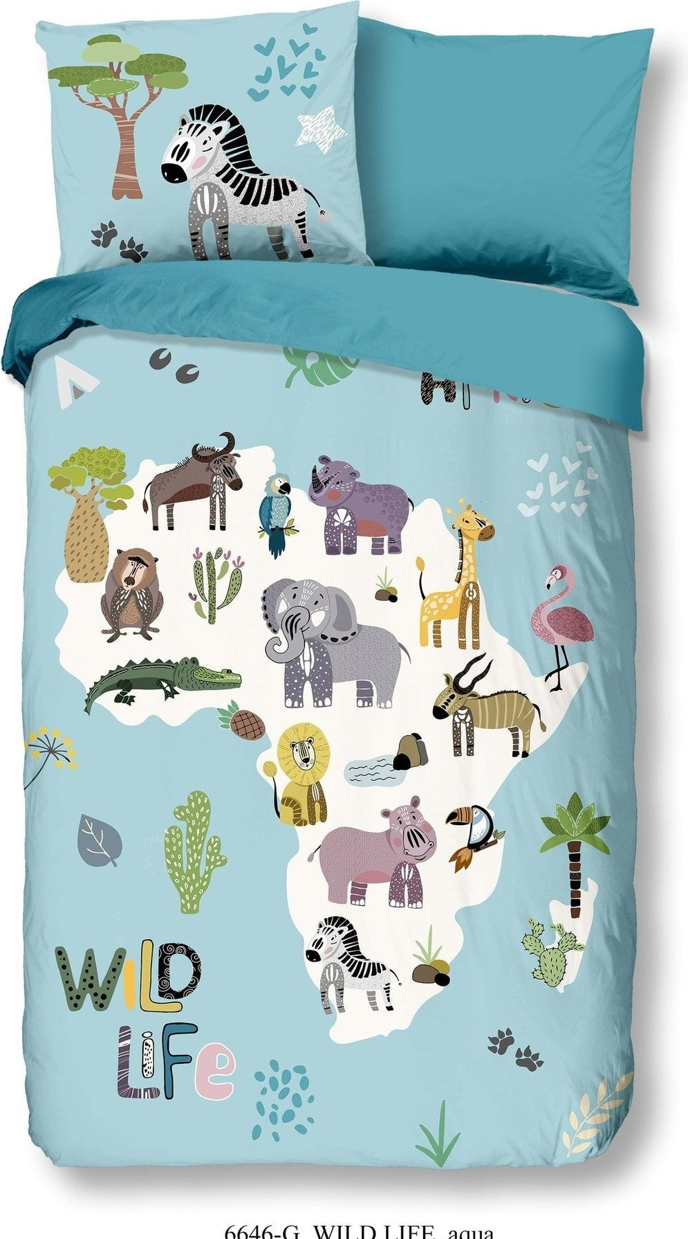 Kinderbettbezug „Wildlife“ von Good Morning mit afrikanischen Tieren, in der Farbe „Aqua“ besteht aus 100 % Baumwolle. Diese Qualität ist atmungsaktiv, feuchtigkeitsabsorbierend und fühlt sich weich und geschmeidig an. Dieser schöne Kinderbettbezug ist eine Bereicherung für jedes Kinderzimmer und für jede Jahreszeit geeignet. Der Baumwoll-Bettbezug ist im Sommer wunderbar kühl und sorgt im Winter für Wärme.