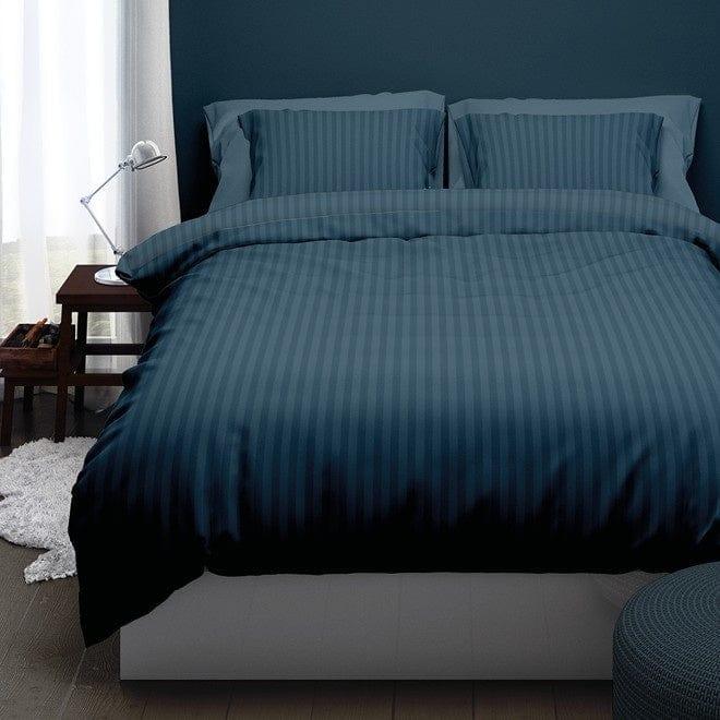 Satin d'Or Housse de couette Satin Rayure Satin Bleu Sarcelle