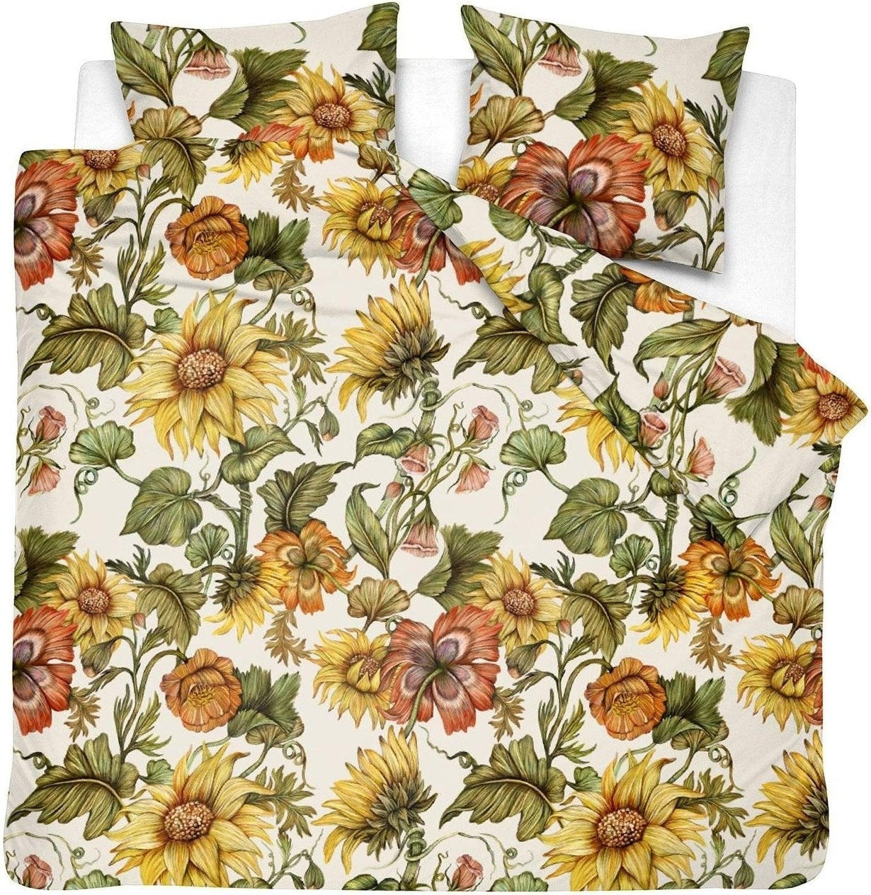Égayez votre chambre avec la romantique housse de couette Cendrillon Serenade. C'est une ode au tournesol et au calice, grands et fidèlement visibles sur la couverture. Avec cette couverture colorée, vous attirerez tous les regards dans votre maison. Les taies d'oreiller assorties sont double face, ce qui signifie que le dos présente un imprimé différent.