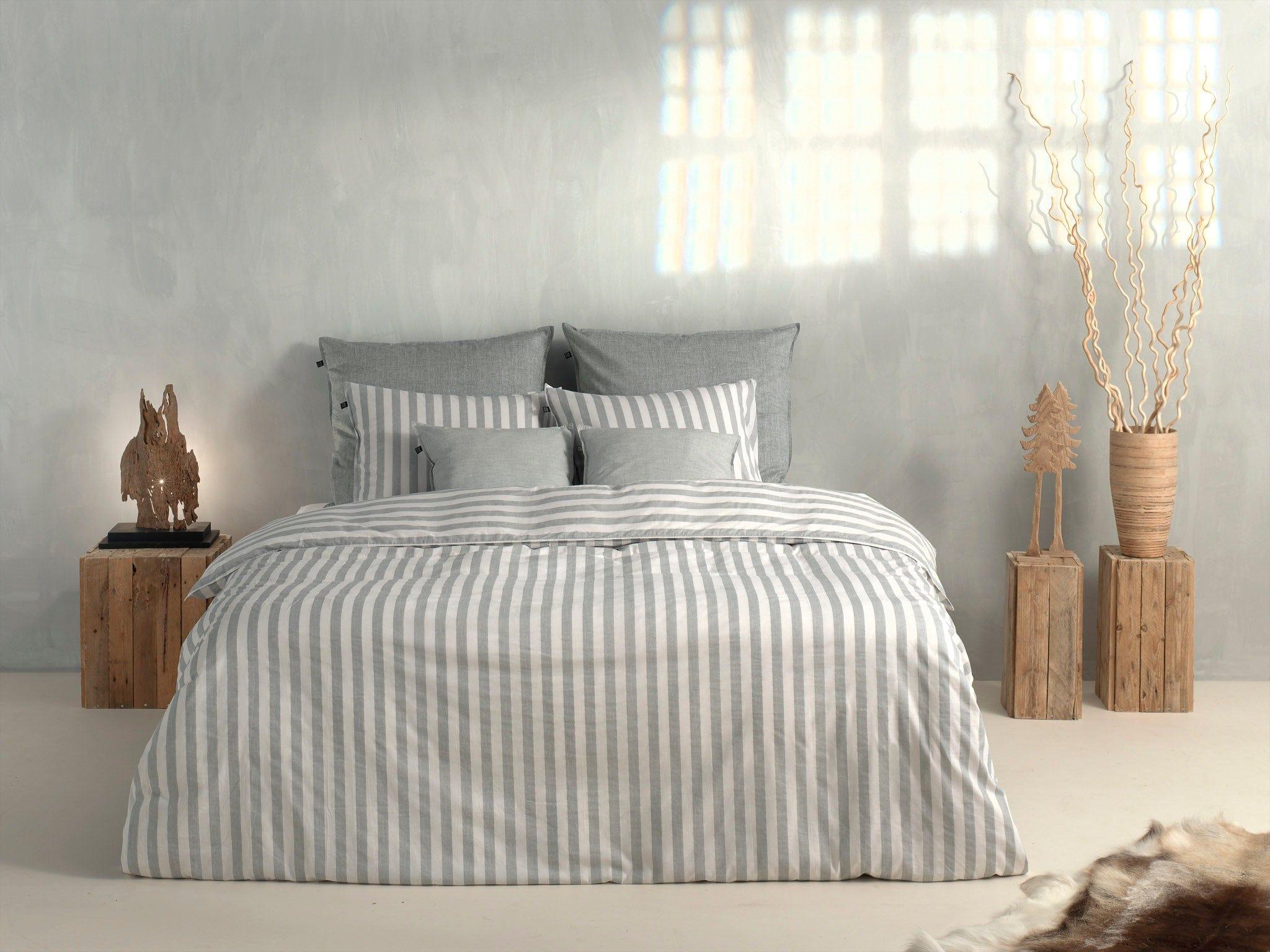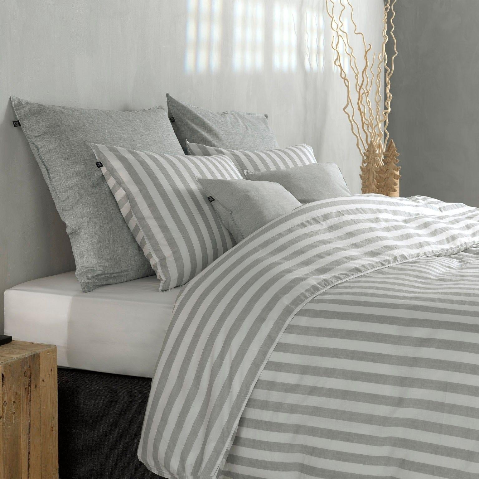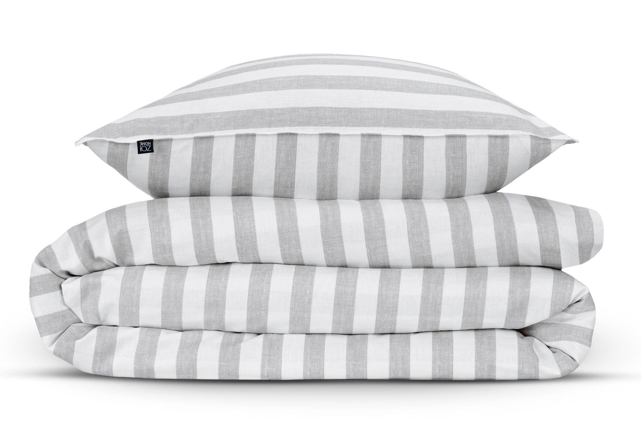 Zo Home Housse de Couette Coton Banda di Lino Gris Tourterelle