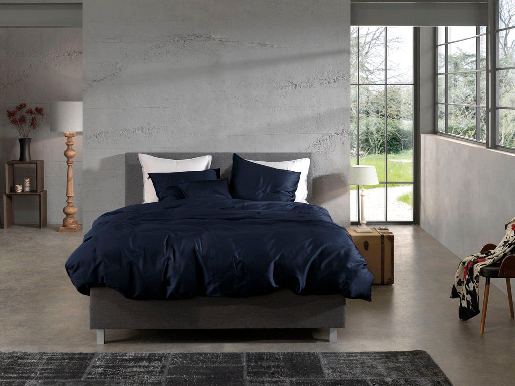 Intemporelle, élégante et merveilleusement apaisante : plongez dans des rêves luxueux sous la housse de couette Satinado de Zohome dans la couleur Bleu Marine. Donnez à votre chambre une touche extra chic en combinant cette housse bleu foncé avec des détails dorés classiques. Ou préférez-vous un joli look scandinave avec des coussins décoratifs rose tendre et de beaux meubles en bois clair ?