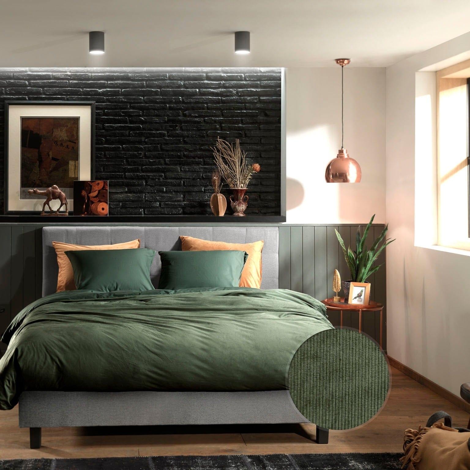 La housse de couette Velluto a Coste de la marque Zo!Home a un bel aspect velours dans la couleur Racing Green. La couleur verte donne à votre intérieur un aspect chaleureux et apaisant. Le dessus de la housse de couette est en tissu côtelé 100 % polyester. Le polyester garantit que la housse est infroissable et conserve bien la couleur. Il est doux au toucher et donne à votre chambre un look chic. Le dos est composé à 100 % de coton de qualité sergé. Le sergé est un coton rendu plus doux, plus ample et plus résistant grâce à une technique de tissage unique. Cela permet également au matériau de se froisser moins rapidement. Equipé d'une double bande de rentrage continue sur toute la largeur. Comprend une ou plusieurs taies d'oreiller assorties. Disponible en différentes couleurs.