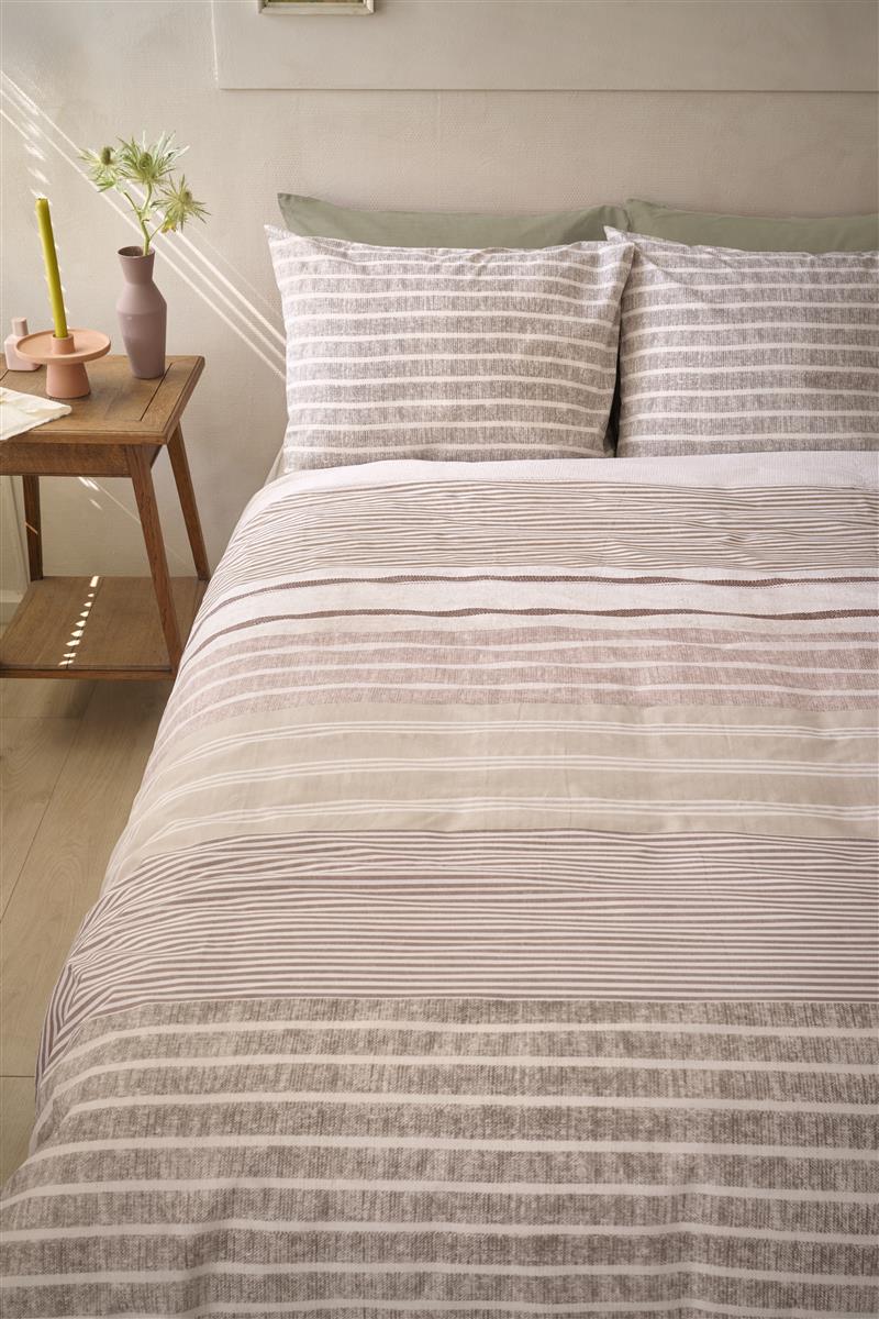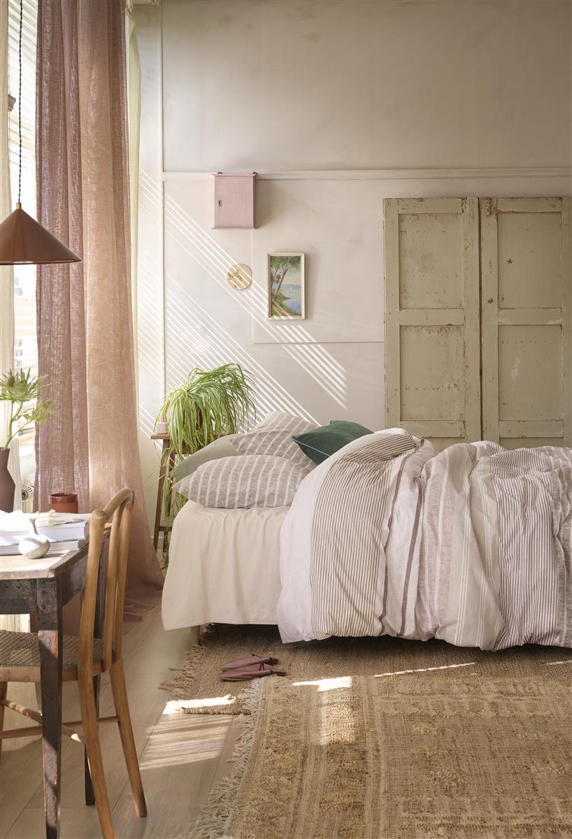 Het voorjaar komt eraan, haal de zomer in huis en je slaapkamer. Dekbedovertrek France van Ariadne at Home helpt je hierbij met zijn speelse print van banen en strepen. De zachte, landelijke kleuren zoals nude, zand, terra en wit creëren een warme en knusse sfeer, ideaal om ’s avonds heerlijk onder te kruipen. De voor- en achterkant van het overtrek France zijn hetzelfde.