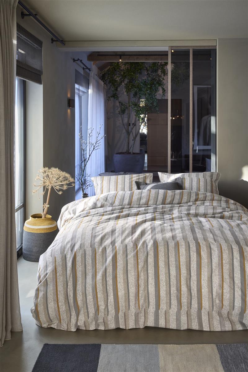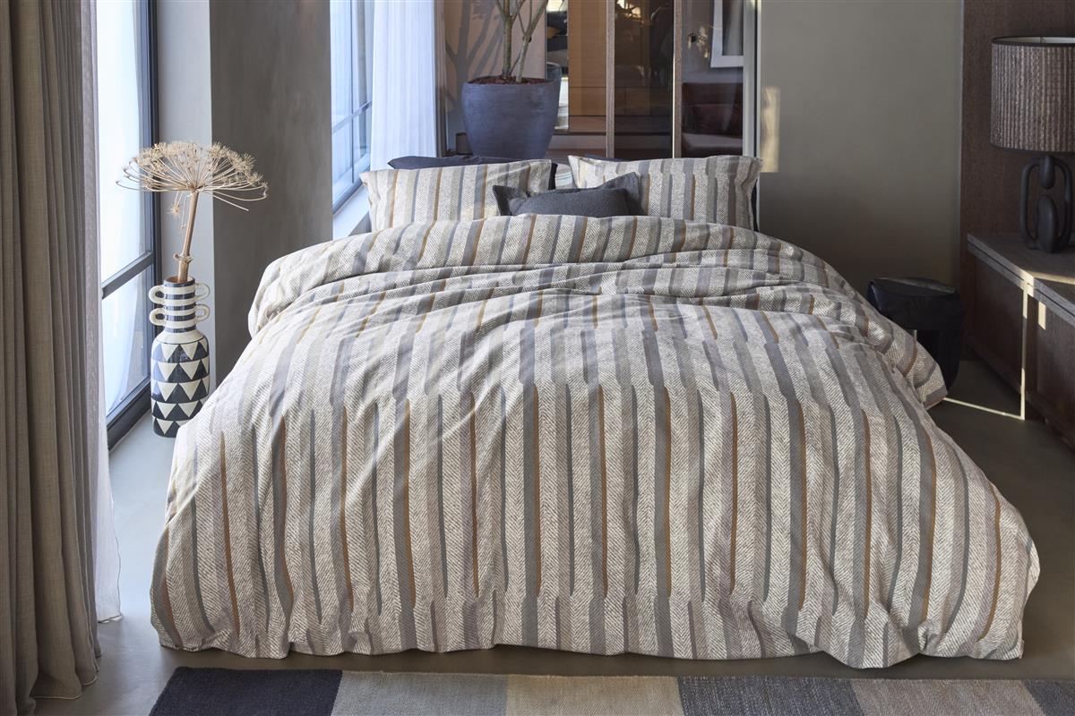 Dekbedovertrek Annie heeft een moderne print van verticale strepen op een ondergrond van een geweven tweed structuur. Het abstracte, verspringende patroon in warme bruin- en natureltinten geven je slaapkamer een knusse sfeer. Dekbedovertrek Annie is beschikbaar in meerdere kleuren.