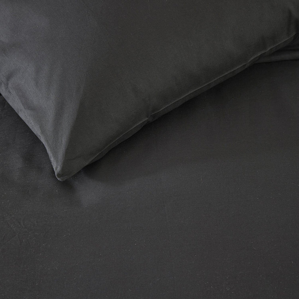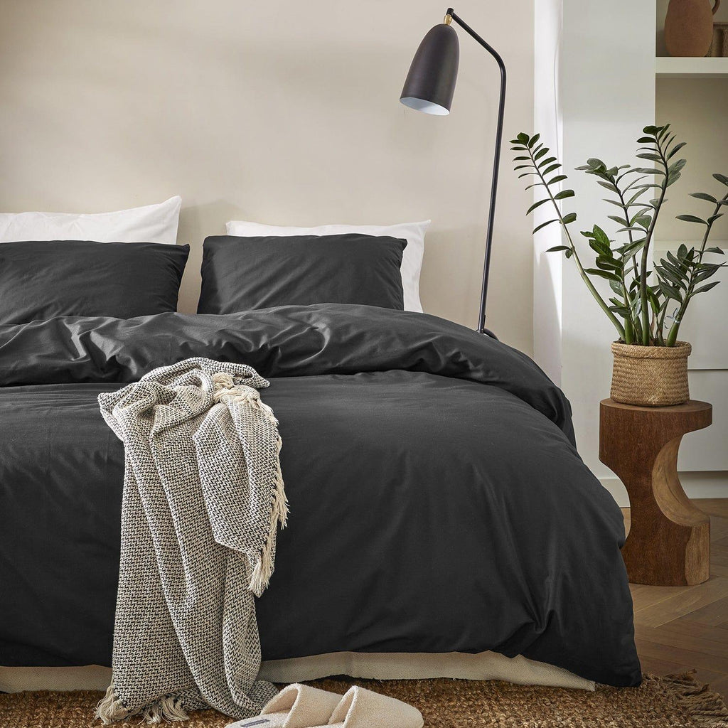 Zet je slaapkamer in de spotlights met dit effen zwarte dekbedovertrek van Cinderella. De diepe, elegante kleur geeft je interieur meteen een stijlvolle, moderne en rustige uitstraling. Gemaakt van 100% hoogwaardig katoen voelt het heerlijk zacht en ademend aan — ideaal om in weg te dromen. Dankzij de dubbele instopstrook over de volledige breedte blijft je dekbed mooi op z’n plek, ook bij dekbedden tot 220 cm. Eenpersoonsmaten worden geleverd met 1 kussensloop, de grotere maten met 2 slopen van 60×70 cm.