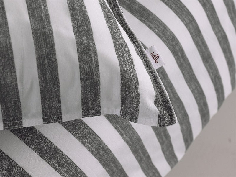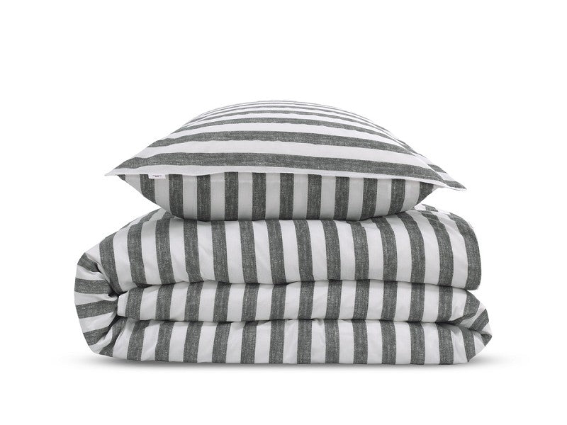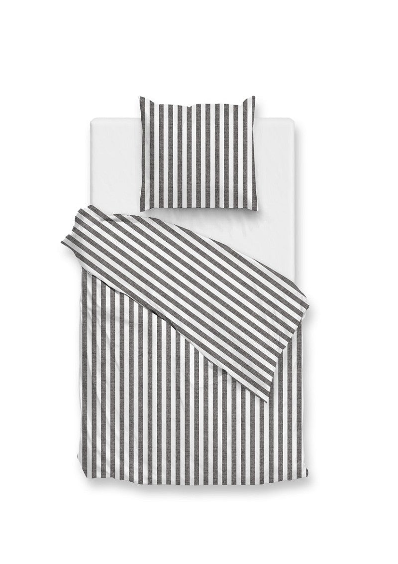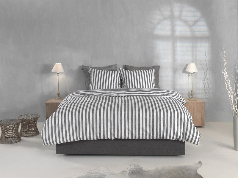 Banda di Lino dekbedovertrek Dark Grey. Compleet dekbedovertrek set van het trendy merk Zo Home. Voorzien van een open extra lange instopstrook, met een traditioneel strepenpatroon in de stijlvolle kleur antraciet. Dit klassiek wit grijs gestreept dekbedovertrek is gemaakt van glad en zacht katoen. Geeft een comfortabele nachtrust en zorgt voor een rustige en warme uitstraling. Het dekbedovertrek is elegant en makkelijk te combineren in ieder slaapkamerinterieur.