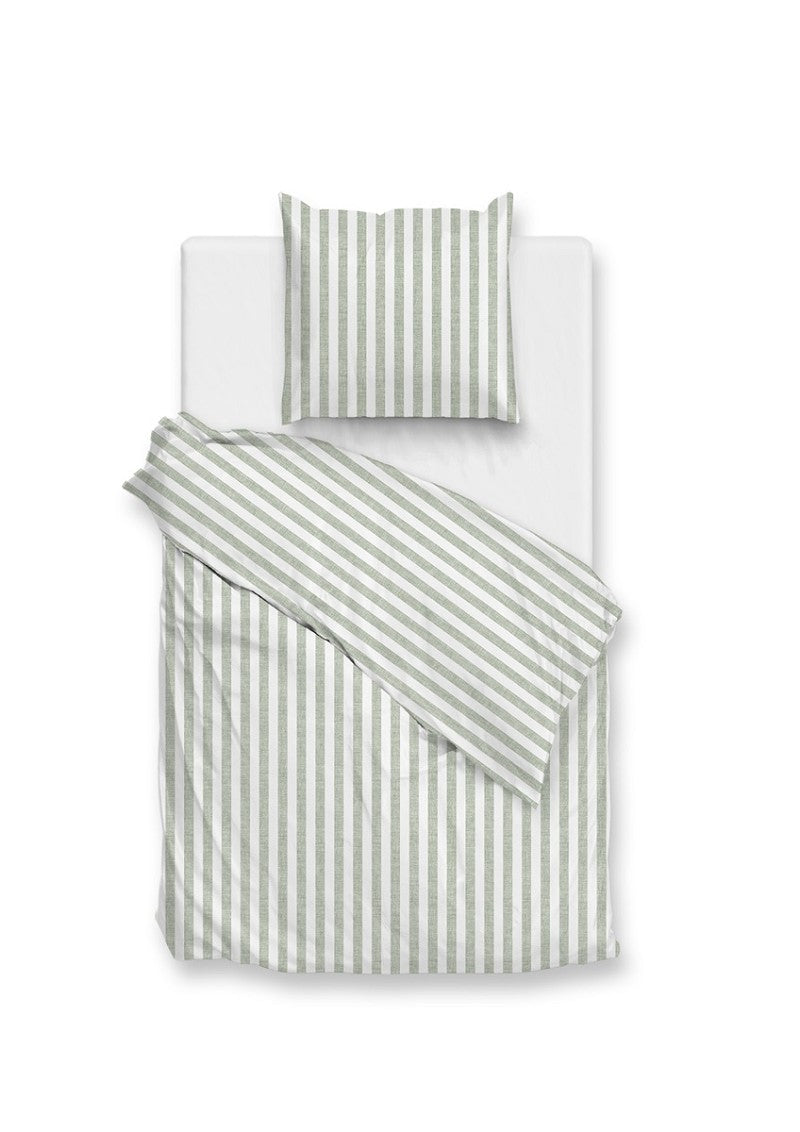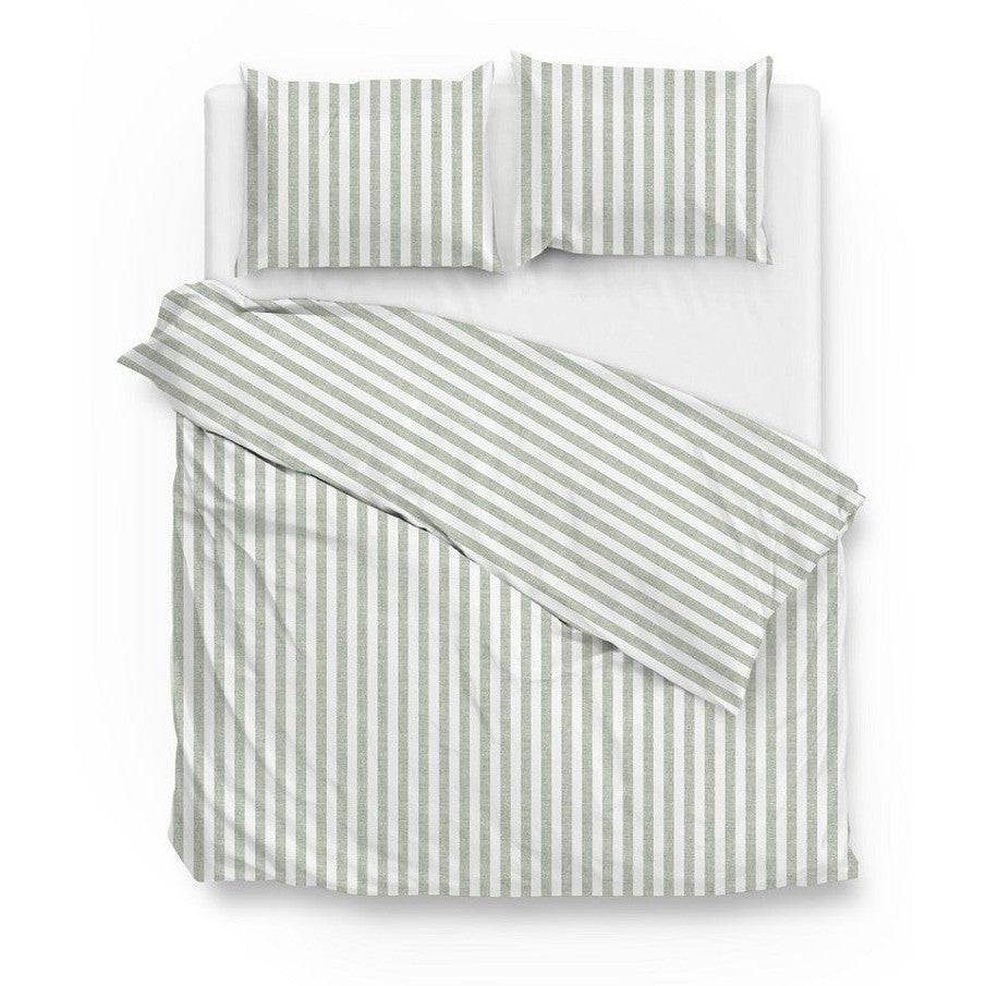Banda di Lino dekbedovertrek Moss Green. Compleet dekbedovertrek set van het trendy merk Zo Home. Voorzien van een open extra lange instopstrook, met een traditioneel strepenpatroon in de frisse kleur mintgroen. Dit klassiek wit groen gestreept dekbedovertrek is gemaakt van glad en zacht katoen. Geeft een comfortabele nachtrust en zorgt voor een rustige en warme uitstraling. Het dekbedovertrek is elegant en makkelijk te combineren in ieder slaapkamerinterieur.
